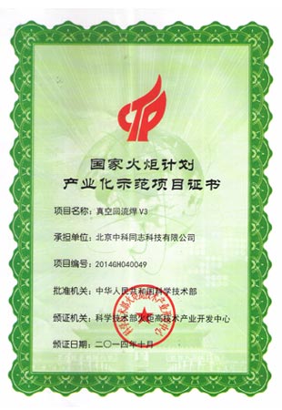 【真空回流焊機(jī)V3取得2014年中國(guó)電子裝備工業(yè)設(shè)計(jì)紅帆獎(jiǎng)并取得國(guó)家火炬計(jì)劃示范項(xiàng)目證書(shū)】