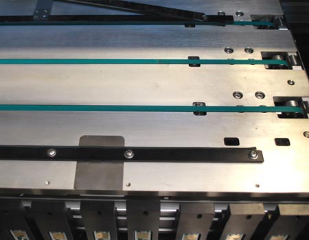 1.電路板傳動采用精密電機帶動工業(yè)皮帶配合精密導軌實現,有效提高貼片精度。